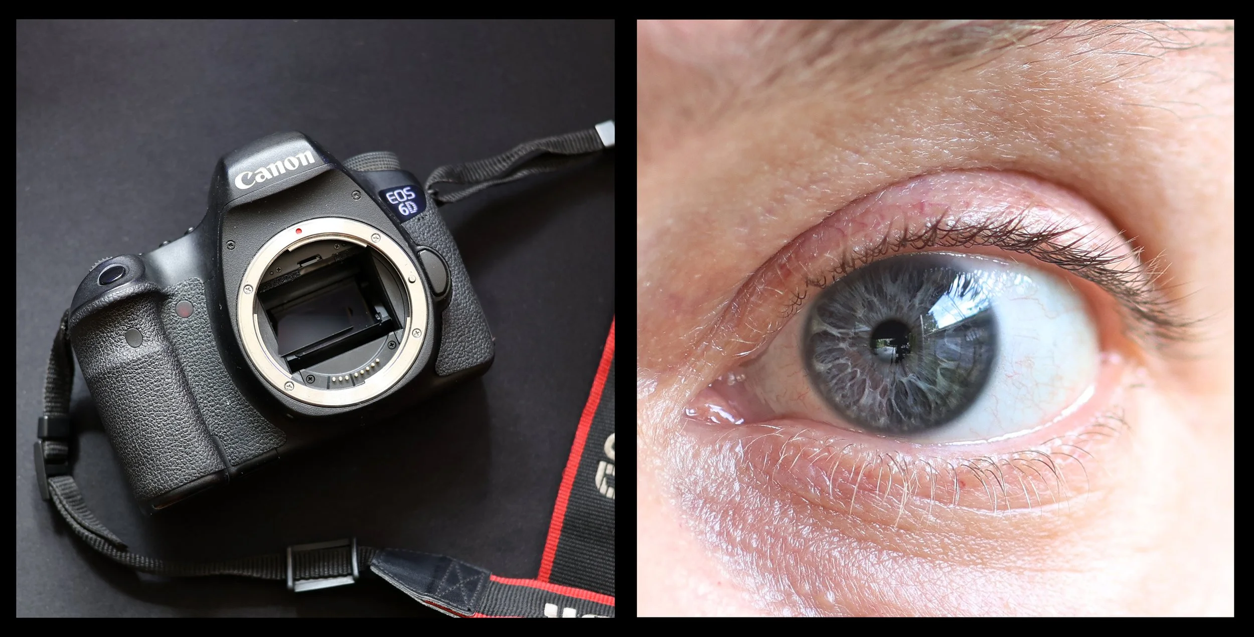 Mirrored canon DSLR on the left and an image of my eye / iris on the right. ©️Matthew Bolt Photography 2025