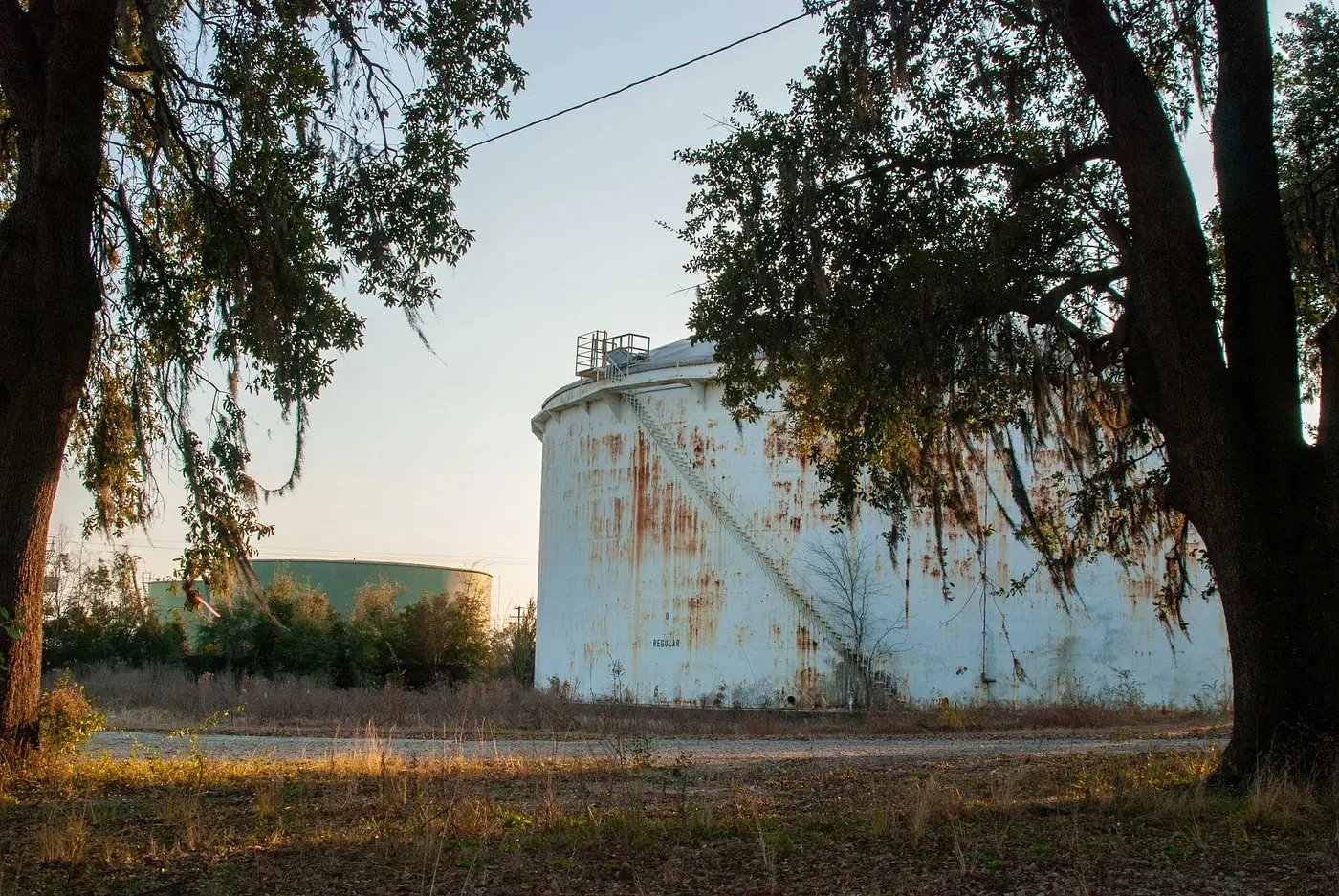 An abandoned oil silo — trespassing in Charleston, South Carolina. Image used for Trident Technical College school project in 2009